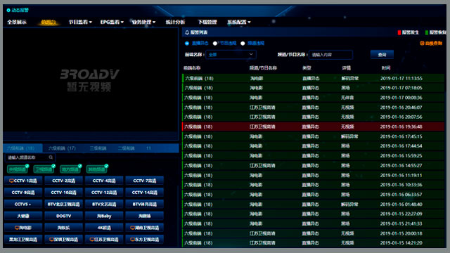 對廣播電視各業務采用平臺化的統一管理方式,一站式提供技術指標監測、節目質量監看、信息收錄、異態報警、歷史回溯等功能,塑造全面、高效、流暢的安播監管業務流程。