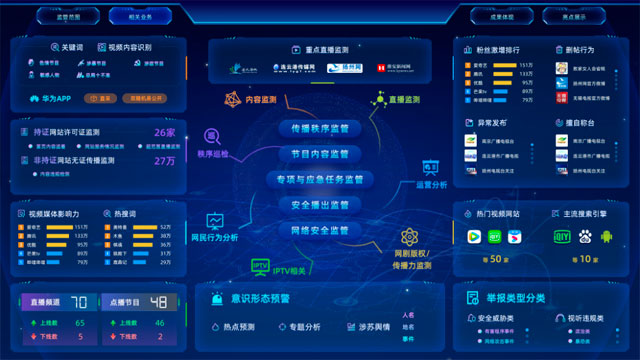 打破“一個業務、一個系統、一套設備”的建設模式。實現網絡視聽新媒體各類業務在一個平臺上融合監管、監管大數據在一個平臺上匯聚共享、監管結果在一個平臺上收錄發布,實現了全業務、全流程、多維度的智能化、便捷化監管。