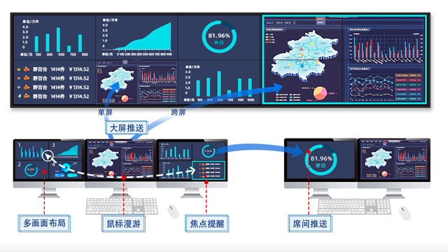 信源可視化預覽,多方式快速導覽;大屏可視化布局,所見即所得,支持多畫面合成、畫中畫、跨屏、漫游、底圖;布局預案編制,一鍵快速調取。