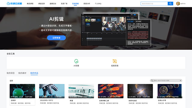 實現課堂實錄的規模化管理和智能化應用,結合AI剪輯技術的精品課程在線創建,各類公共資源的統一接入管理,實現校本資源的共建共享。