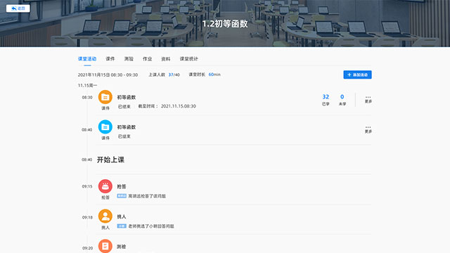 支持在線簽到、挑人提問、課堂測驗、互動彈幕、實時搶答等互動方式; 學生可通過電腦、平板、手機等終端參與互動。